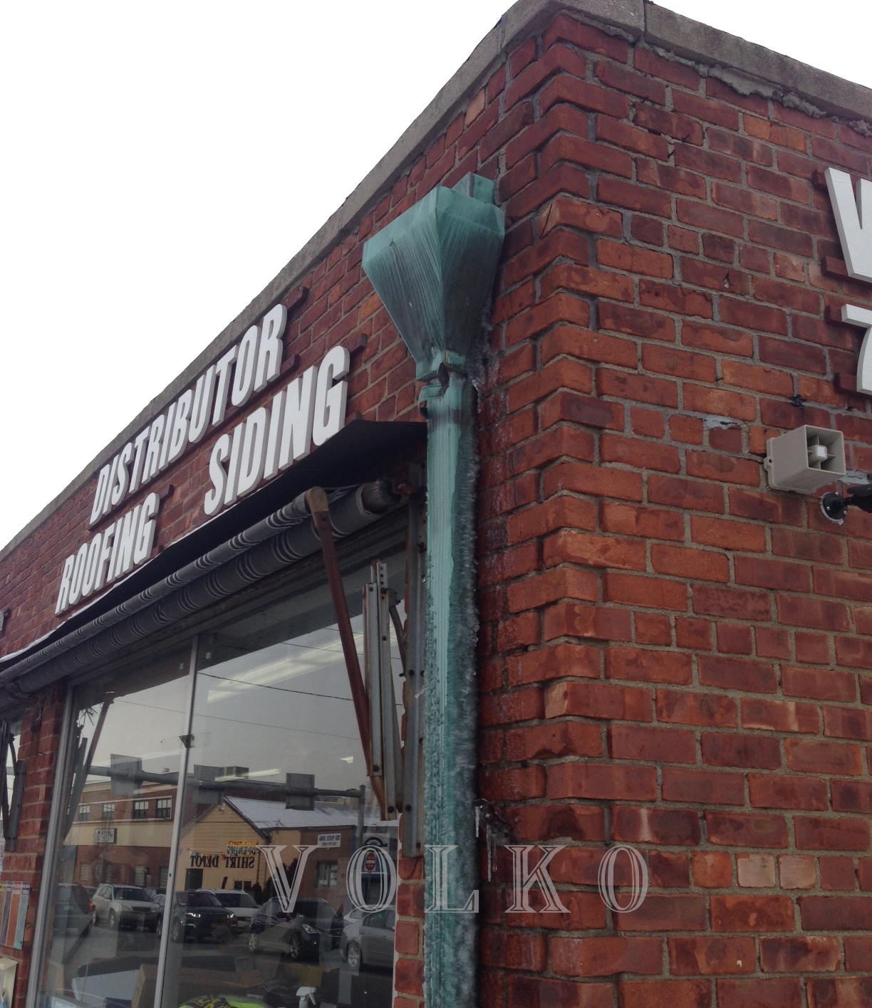 leaderheads with flat sides to tuck up against sidewalls of the house, and