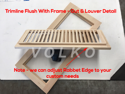 We will try to make purchasing wood floor vents, heat grilles, oak vents, grates or wood registers easy. A "Register" is basically a grille with a damper attached to control air flow from a forced air or heat system. Usually the actual metal register is mounted in the sub floor and covered by sometimes decorative vents, but we can order any stock size wood grille with an attached metal damper. Original wide louver wood vents and baseboard vents do not have the attached damper as an option. Most manufacturers make their wood registers & wood vents quite different and here is how. Some grilles are made out of a flat wood board (oak, maple, whatever species) and the louvers are either cut, drilled, or routered out of this single piece. Mostly strait cuts but some do angle the louvers. You should finish these very well to prevent warping splitting & checking. Another way is a grille or grate that is not 1 piece of wood. These vents are also well made but different in that the frame is 4 pieces and all the louvers are individually hand assembled and glued. This style may reflect a slight cost difference as you shop. And of course for all those of you where everything in your house seems to be "custom", we do that too. Any wood grill, grate or vent can be made to your specifications.