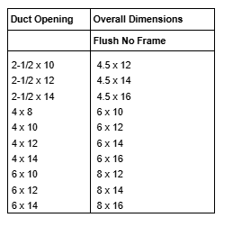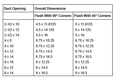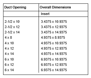 - Overall Dimension is usually 2" greater than Duct